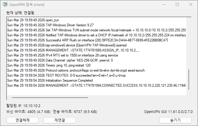 10.10.xxx.1은 OpenVPN 서버쪽 터널 IP예요.