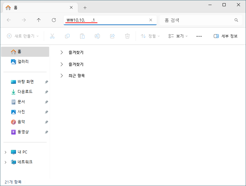 여기에 ₩₩10.10.xxx.1 주소를 입력해요.
