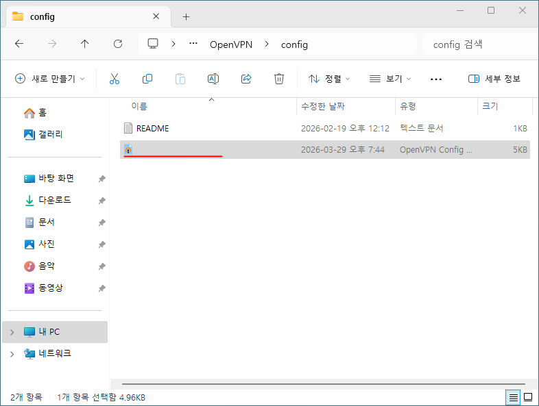확장자가 .ovpn인 클라이언트용 인라인 파일을 C:\Program Files\OpenVPN\config 폴더 안에 넣어요.