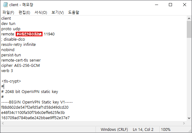 클라이언트 즉, 사용자용 .ovpn 파일을 수정할 필요는 없어요.